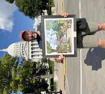 A native of Wisconsin, James Steeno is an independent artist/illustrator in Milwaukee. Born and raised in Green Bay, he began art classes at a young age. He holds a Baccalaureate of Fine Arts degree with an emphasis in graphic design and illustration from the University of Wisconsin, Oshkosh. James participates in a variety of art shows, fairs and painting competitions around the state of Wisconsin. His artwork can be found in shops around the greater Milwaukee area. James works full time as a professional artist/illustrator/creative entrepreneur from his home studio in the Washington Heights neighborhood of Milwaukee where he resides with his wife Heidi and their daughter.